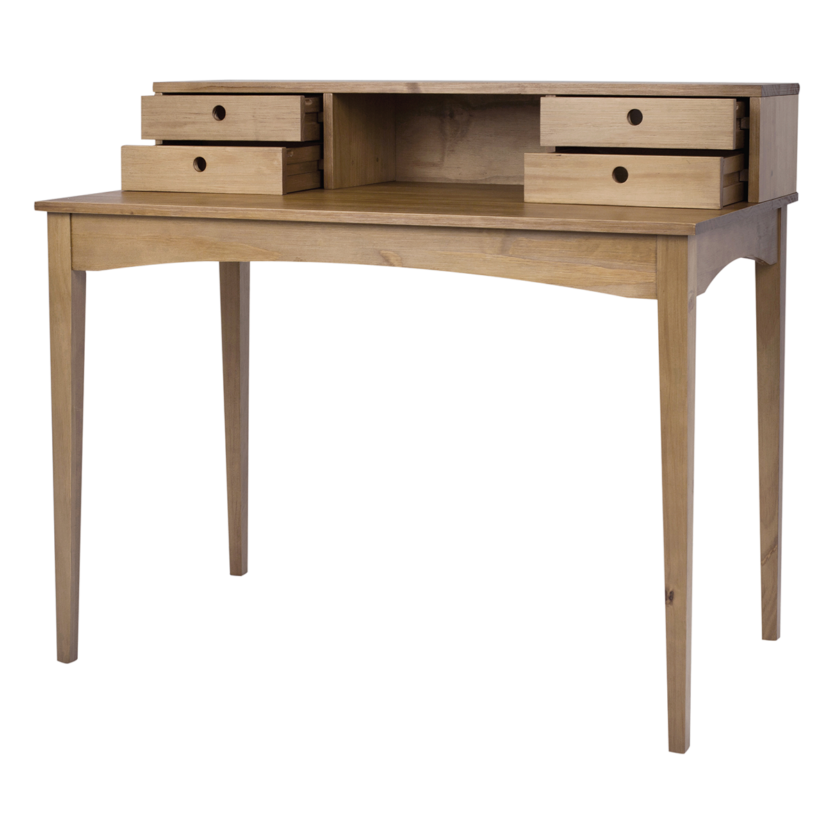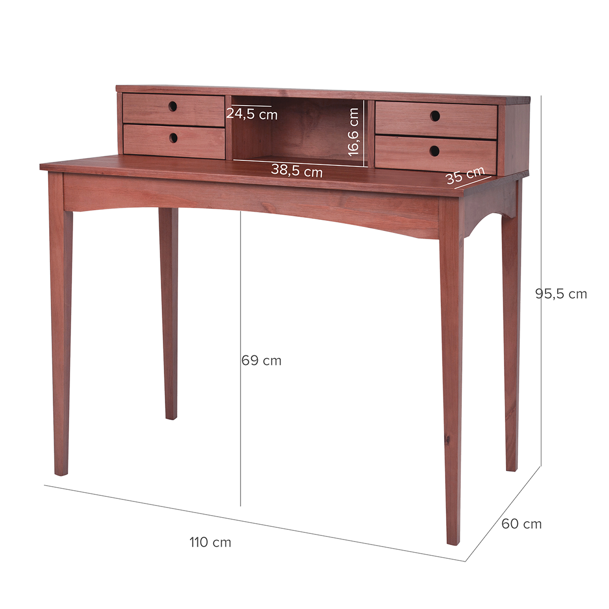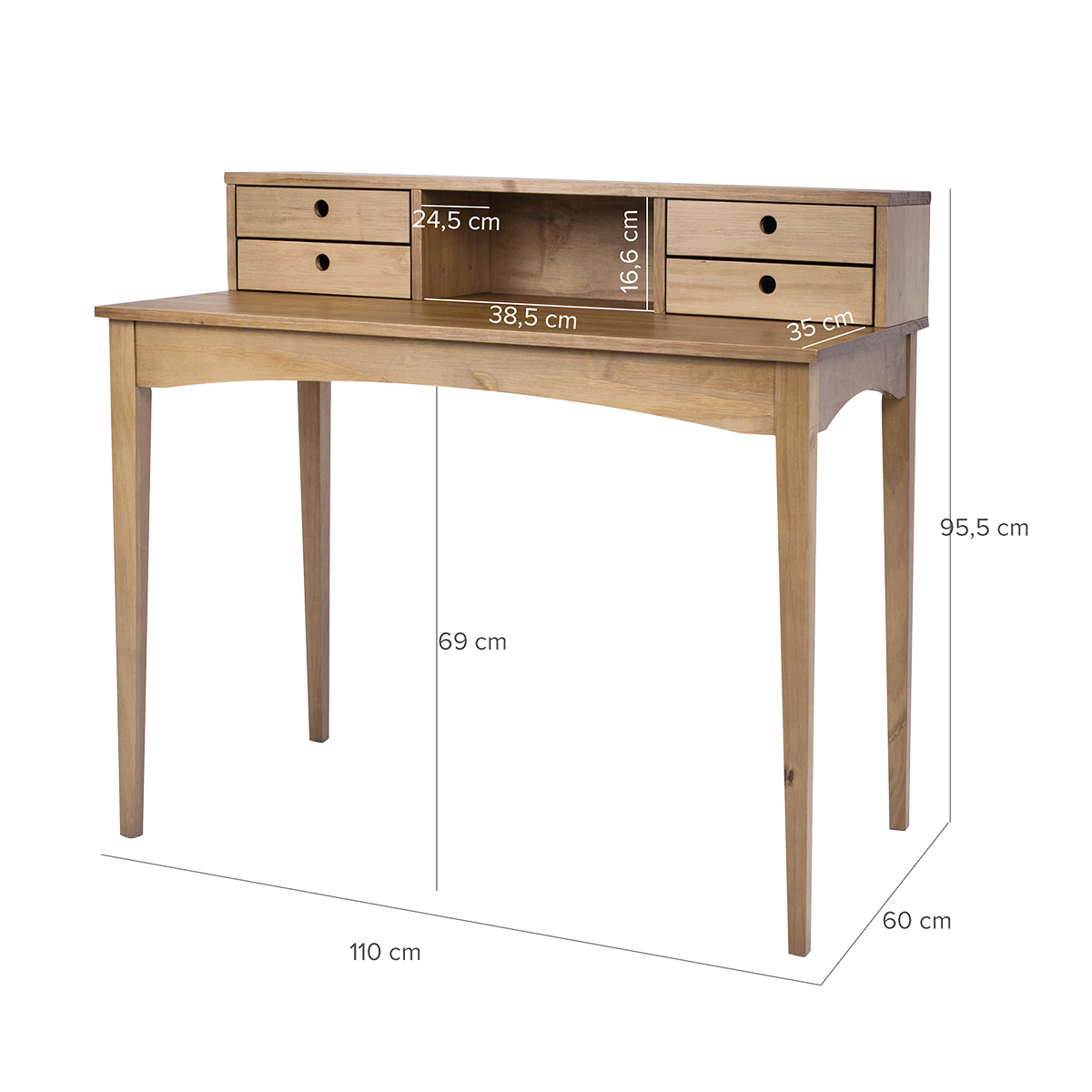 Stabil, schön und vielseitig: Der Schreibtisch “Charme” ist perfekt für Ihr Büro und kann ebenso als Schminktisch oder Frisiertisch dienen. Er hat 4 Schubladen für die Aufbewahrung von kleinen Gegenständen und eine Nische für Organisationsboxen, Papiere und vieles mehr. Sie können ihn auch als Schminktisch mit einem Spiegel benutzen!