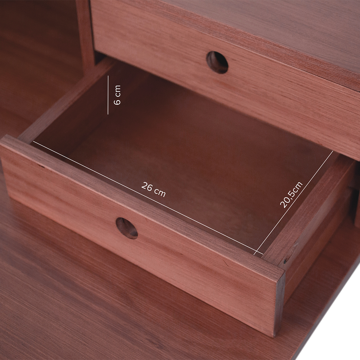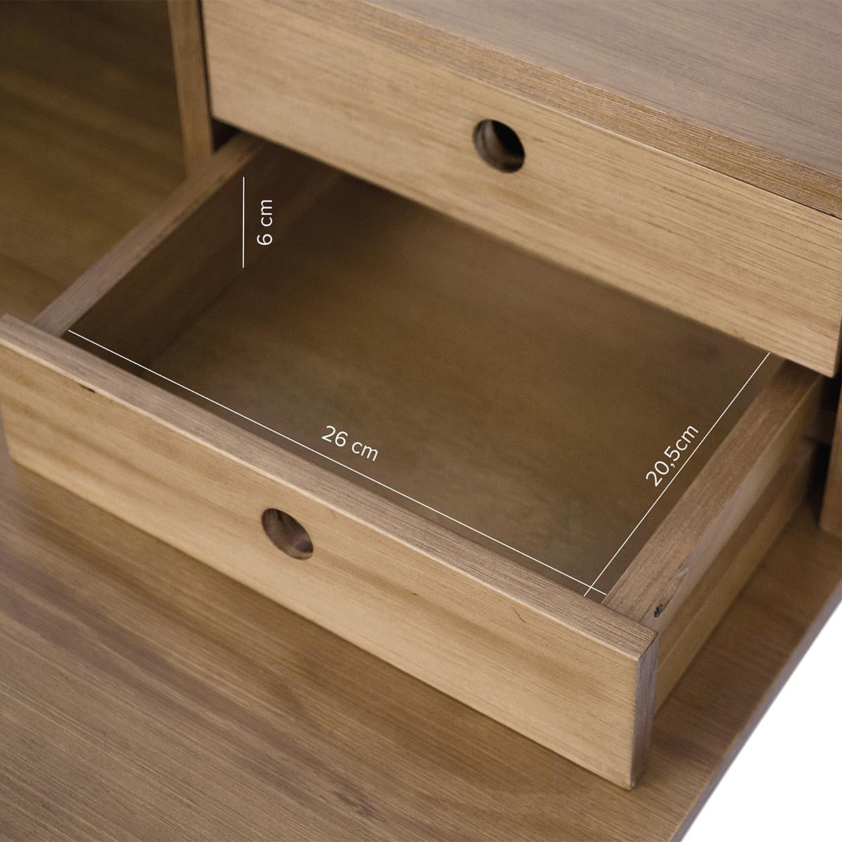• Innere Maße der Schublade: Höhe: 5,8cm; Breite: 27cm; Tiefe: 20,5cm.