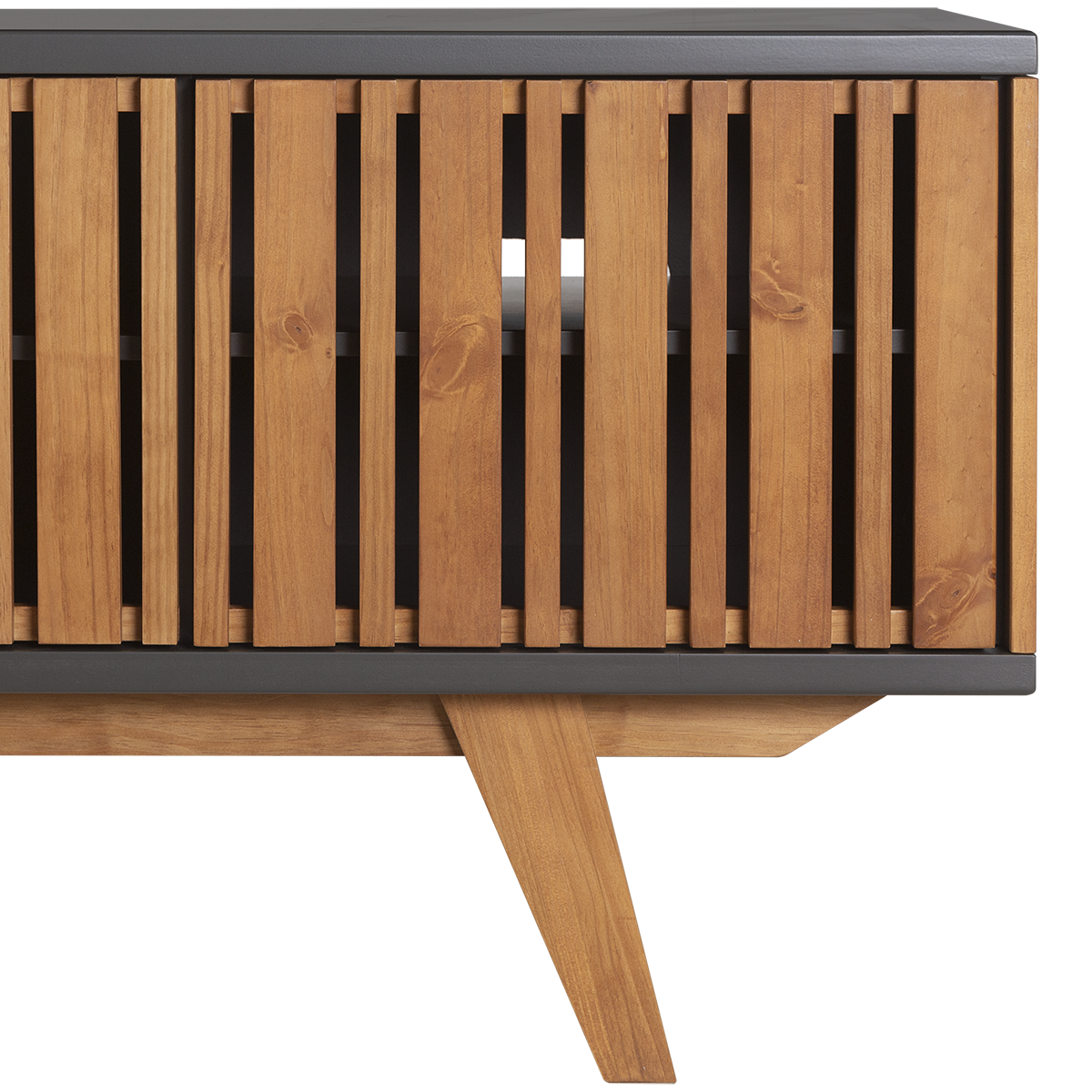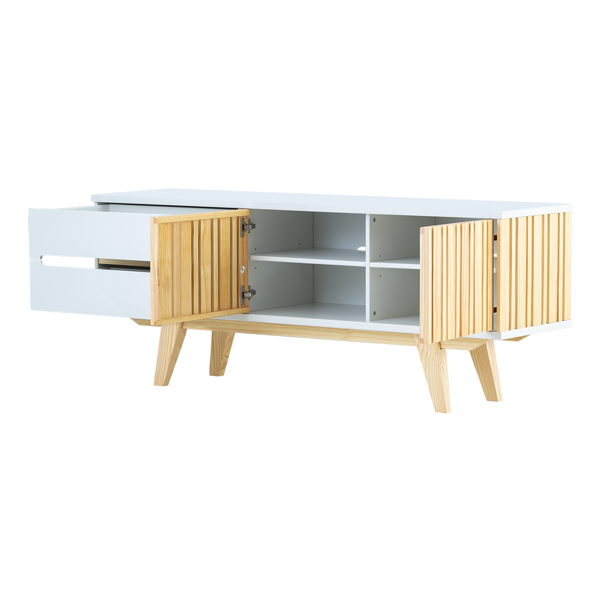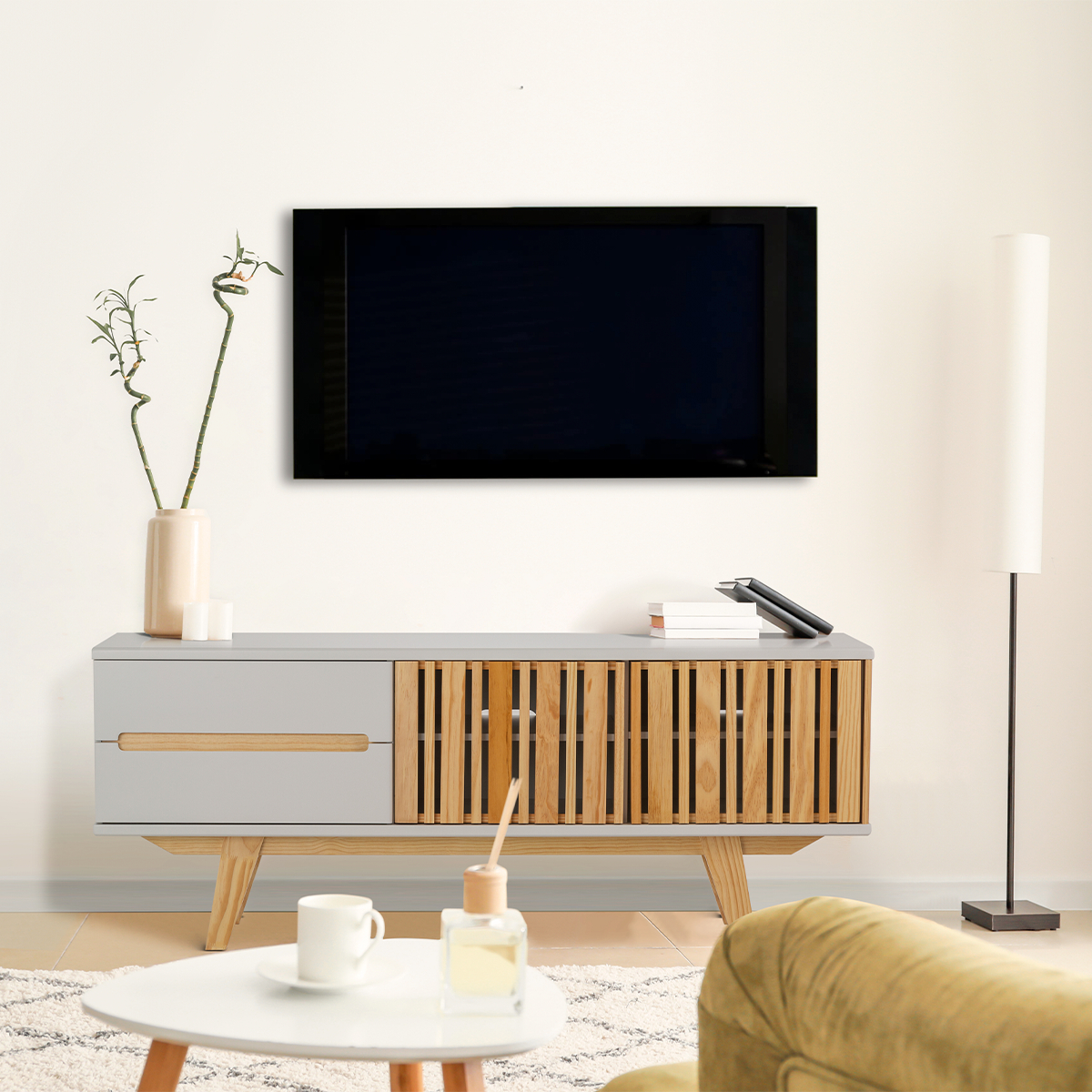 Dieses Rack kann alle elektronischen Geräte aufnehmen, die Wi-Fi und/oder Bluetooth verwenden, und Sie verlieren das Signal nicht, dank des Designs mit Lücken in den Türen, das weiter sendet (auch bei geschlossenen Türen). Sie können Geräte und Kabel "verstecken" und Ihre Fernbedienung funktioniert weiterhin ohne Änderungen.