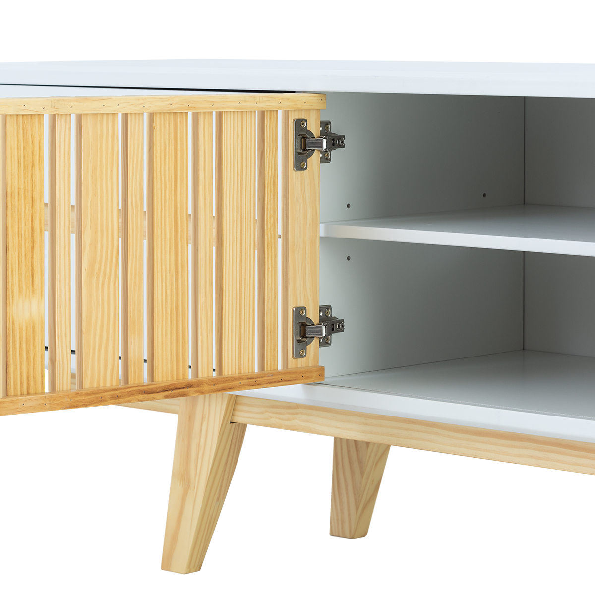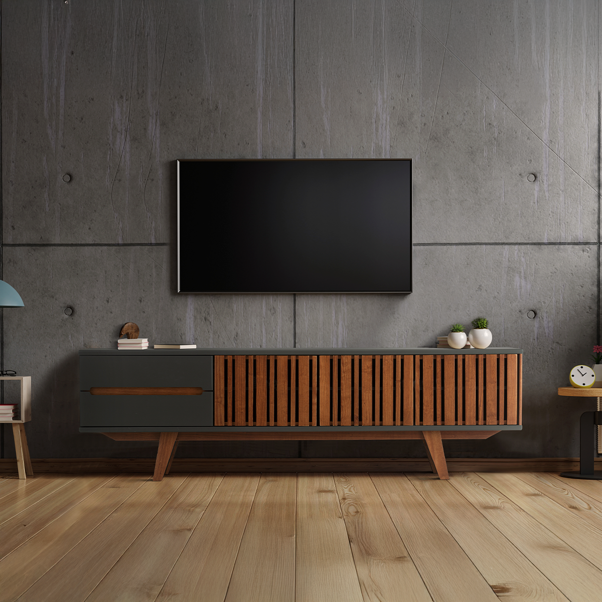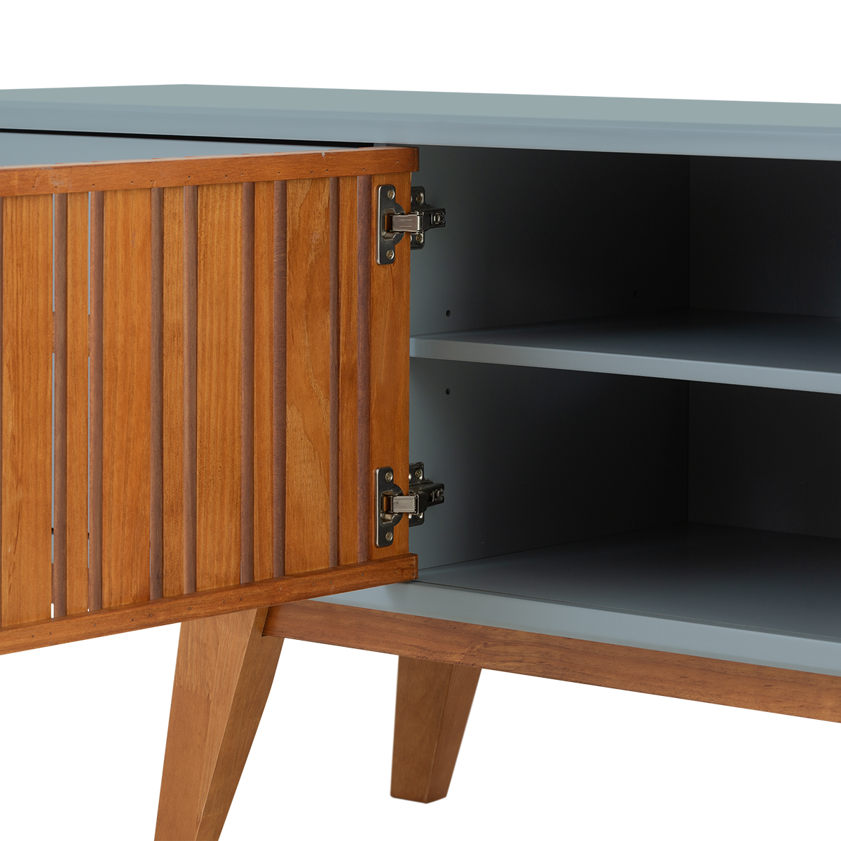 Dieses Rack kann alle elektronischen Geräte aufnehmen, die Wi-Fi und/oder Bluetooth verwenden, und Sie verlieren das Signal nicht, dank des Designs mit Lücken in den Türen, das weiter sendet (auch bei geschlossenen Türen). Sie können Geräte und Kabel "verstecken" und Ihre Fernbedienung funktioniert weiterhin ohne Änderungen.
