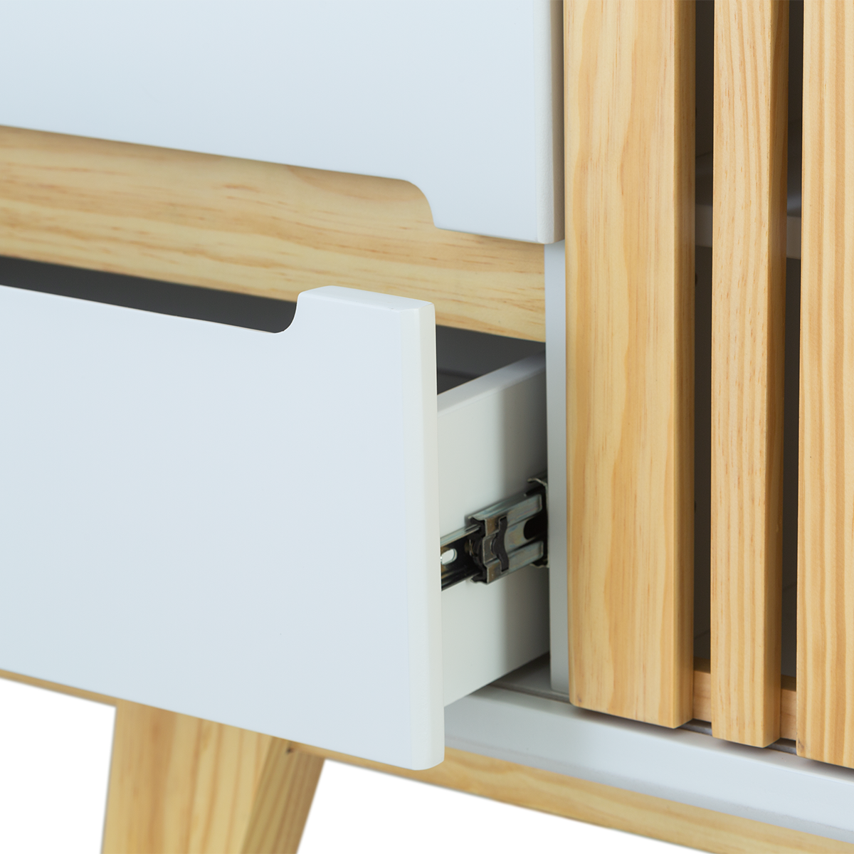 Die Schubladen können je nach Bedarf und gewünschter Umgebung auf der rechten oder linken Seite des Lowboards montiert werden.